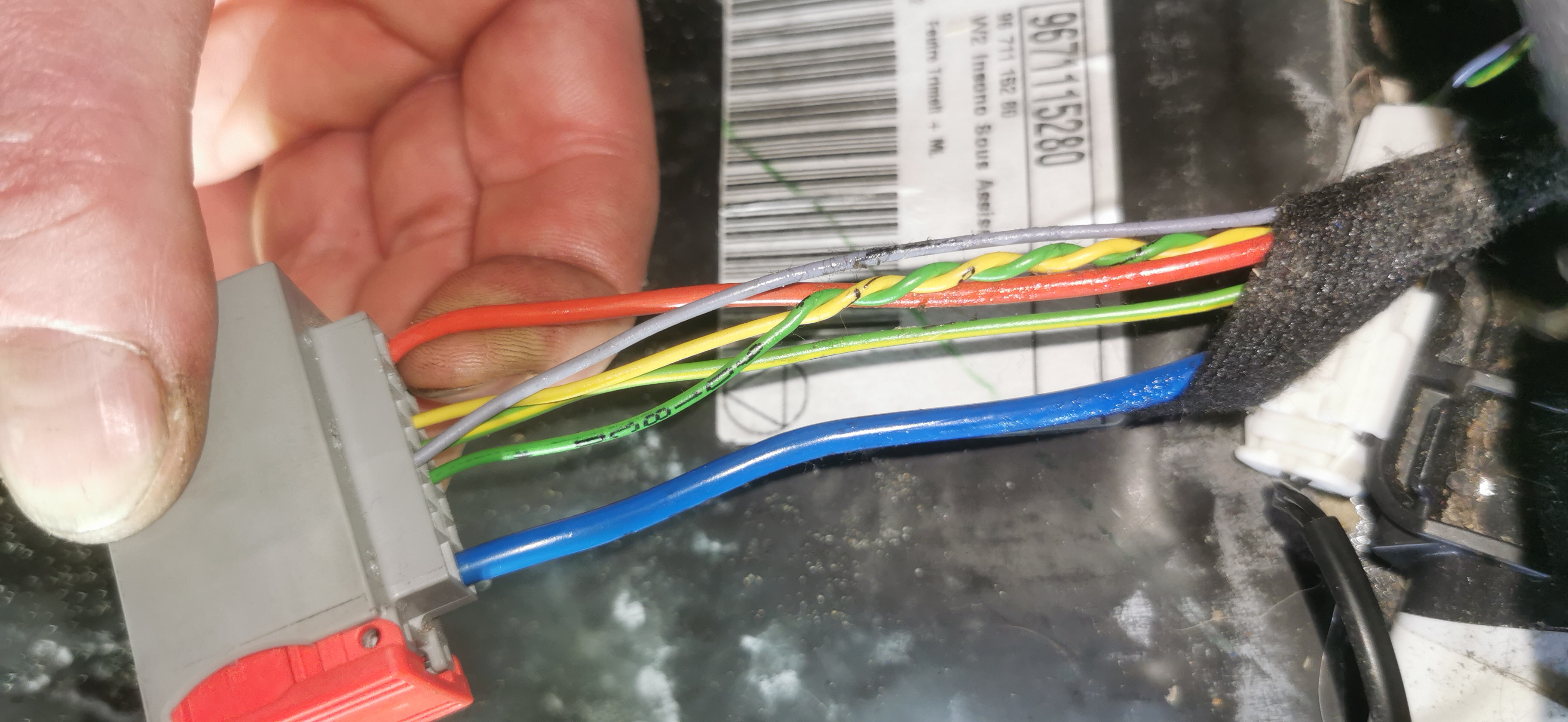 najprawdopodobniej gniazdo jest na wolnym przewodzie w okolicach BSI zle kolor kabli jest w gniezdzie inny i na kablu w instalacji