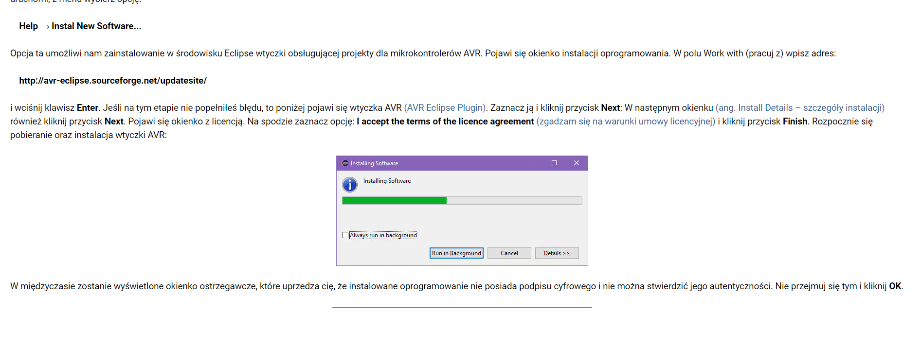 W oparciu o ten 'tutorial' AVR_TOOLCHAIN+ECLIPSE chciałem pisać programy do AVR. (na system WINDOWS w wersji 10)
