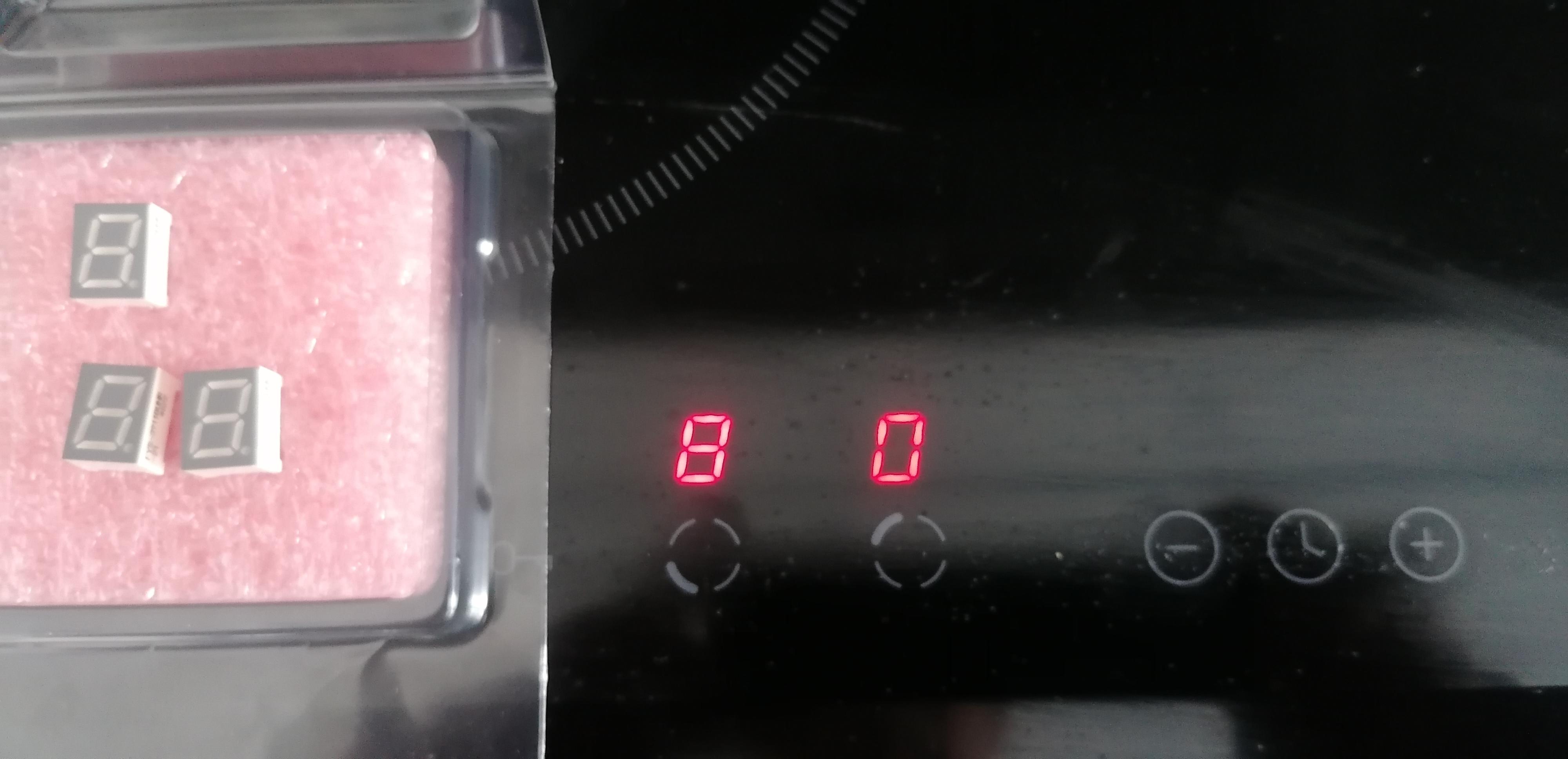 Otóż od kilku miesięcy skrajnie lewy wyświetlacz największego pola grzewczego zaczął wyświetlać nie pełne wartości cyfr. Od dwóch tygodni cyfry w skali od 0 do 9 bez jedynki wyświetlał tylko górną i dolną linijkę czyli dwie równoległe kreski. Po rozeznaniu się w temacie z sugestii na Forum zamówiłem wyświetlacz według podanego typu czyli FYS-3911BUHR-11. W przesyłce otrzymałem nieco inny typ bo FYS-3911BUHR-21, ale niczemu to nie szkodziło. Wszystko jest Oki.