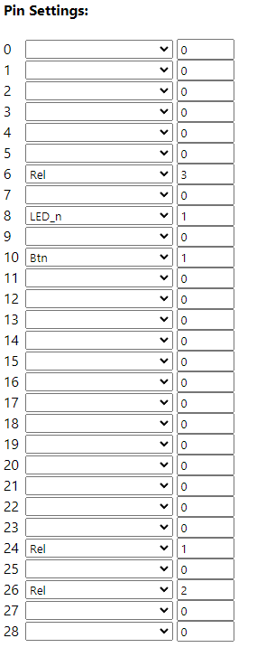 PINOUT listwy po wgraniu OpenBeken: