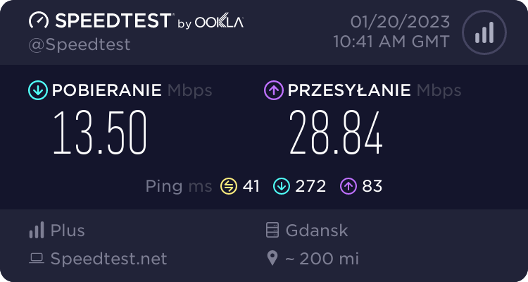 Ja odpowiedź znam ale reglamin zabrania mi pojechać ti z takim "mięsem", na szczęście niebawem daję stąd nogę i mam nadzieję że do kraju z epoki kamienia łupanego już nie wrócę. Każde europejskie większe miasto które odwiedziłem zaliczyłem kilkoma speedtestami w środku dnia i tygodnia. Tylko Polska, Węgry i Słowacja to dno pod tym względem. Jechałem w październiku przez Warszawę, sprawdziłem tam Orange, Play i Plusa. Ten sam myk co w Gdańsku, przedział od 5 do 35Mb/s w Lte cat.6.