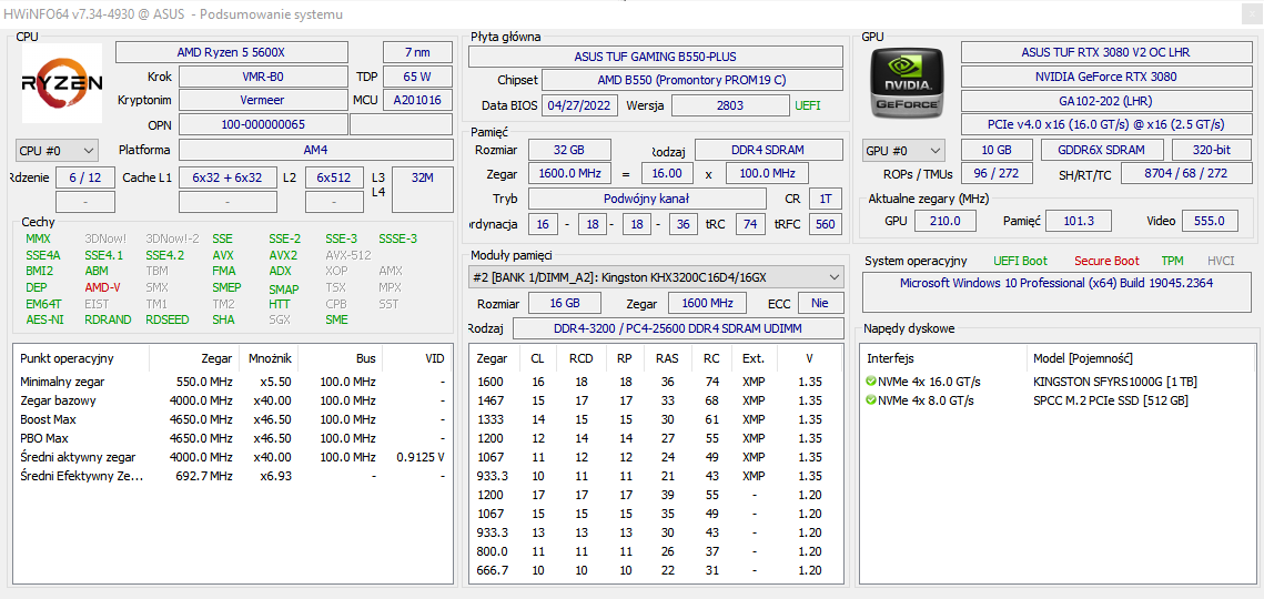 - Motherboard: ASUS TUF GAMING B550-PLUS
