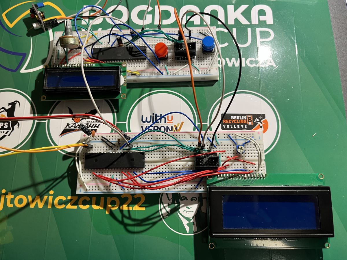Nie posiadam zestawów ATB więc używając ATmega32 i ATmega16 zrobiłem na płytkach stykowych MASTER i SLAVE. Oszczędzę miejsca na opis jak to wszystko wygląda więc załączam fotki całej konstrukcji. Wszystko jest teraz w fazie testów tylko biblioteki dla SPI. Płytki połączone jedynie przewodami. Procki taktowane 8MHz, zasilanie z przetwornic - 5V (zasilacze).