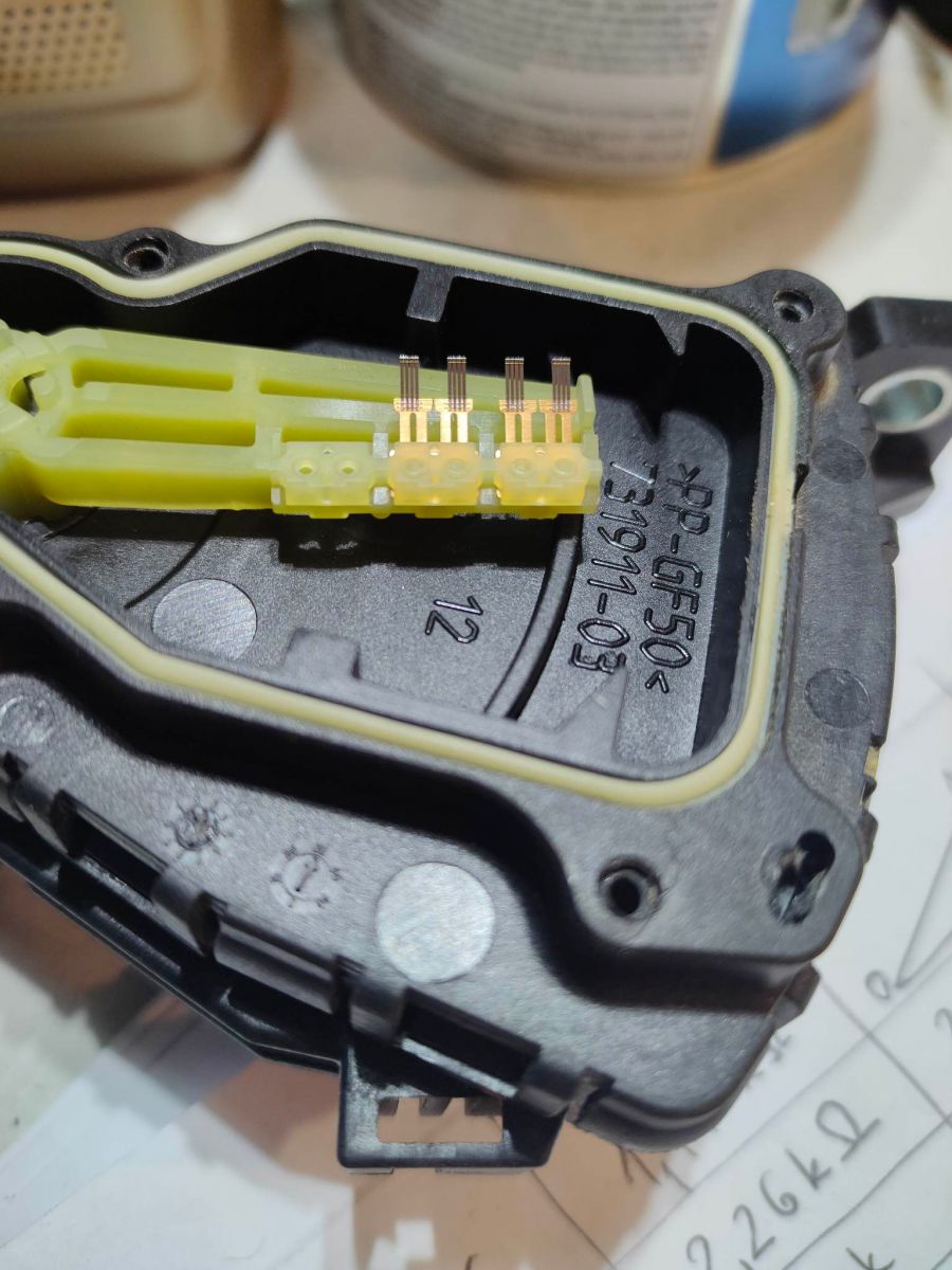 Dobry wieczór, mam ?ciekawy? pomysł dołożenia sobie w aucie funkcji tempomatu. Raczej czegoś w rodzaju tempomatu, bo będzie to drugi potencjometr pedału gazu, tyle, że bez sprężyny powrotnej i w innym miejscu niż prawa stopa. Pacjent to Opel Vivaro 1.9dci 2005 rok. Podsyłam zdjęcia z pomiarów potencjometru, gdyż jedną z opcji, które rozważałem było dołożenie jednego rezystora nastawnego (potencjometru). Niestety różnice w rezystencji (podczas dodawania gazu) występują na czterech parach pinów (1-6),(2-3),(3-4),(5,6) - dlatego też podsyłam zdjęcie budowy potencjometru pedału gazu w środku. Może ktoś będzie w stanie określić czy dałoby radę skompresować cały potencjometr pedału gazu do jednego rezystora nastawnego. Raczej spodziewam się, że zastąpienie całego pedału gazu jednym potencjometrem nie jest możliwe, ale może jednak ktoś będzie miał jakiś pomysł. Druga opcja którą rozważam, to zakup drugiego oryginalnego pedału gazu i dołożenie go jednocześnie z istniejącym już na aucie. Czyli dwa pedały gazu na raz. Ogólnie pytanie brzmi: czy ktoś jest w stanie zrozumieć mój cel-plan oraz pomóc mi ugryźć ten temat. Bardzo dziękuję za pomoc, może ktoś kiedyś z tego skorzysta