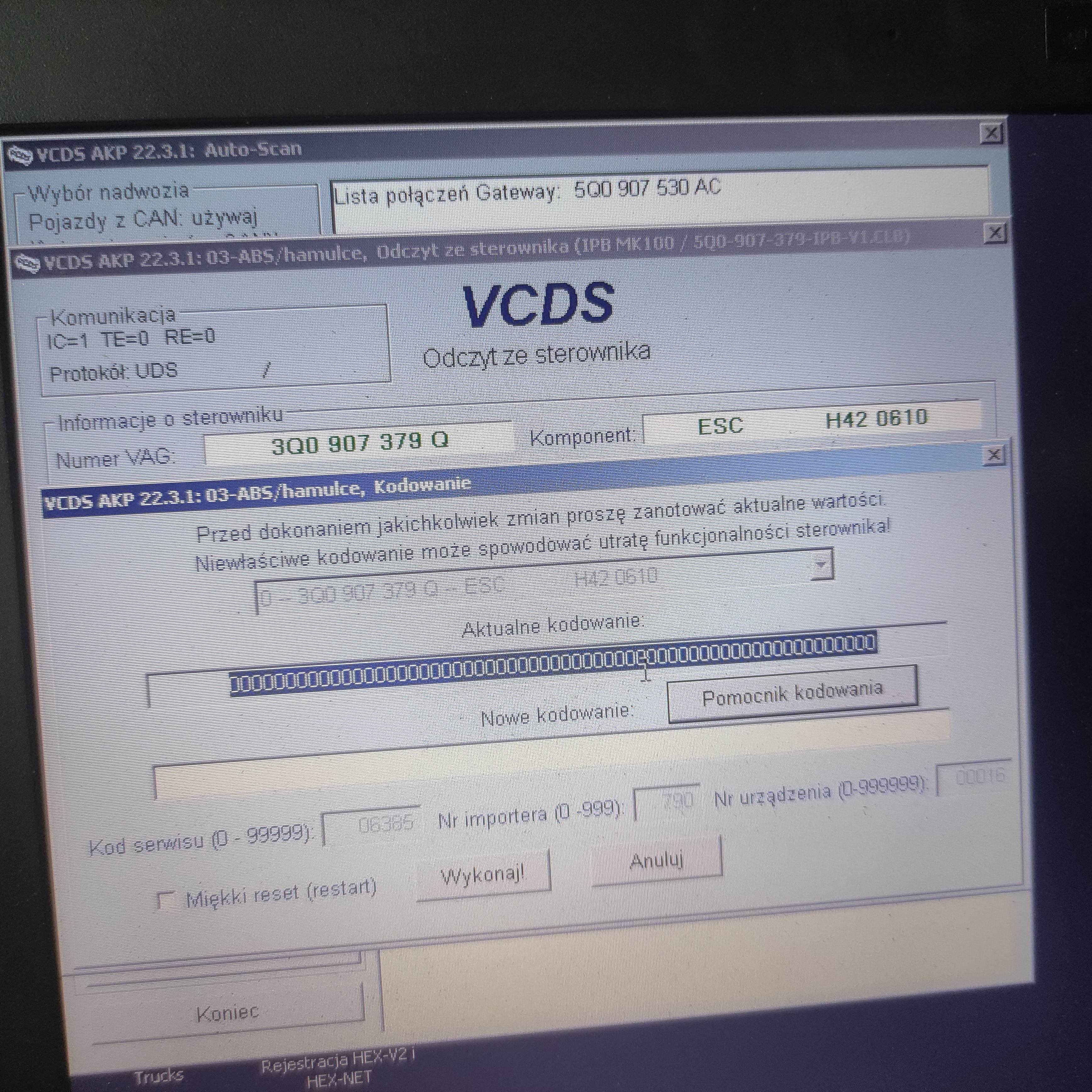 Witam mam problem za audi a3 8v z 2015 r 2.0tfsi wersja USA a mianowicie wysypane jest kodowanie same 000000 świeci ABS trakcja i hamulec ręczny .
