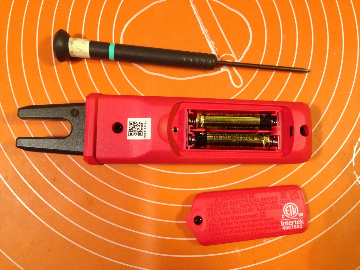 To, co najciekawsze to właśnie "widełki" - w sumie zapewne konstrukcja zbliżona do tej znanej z mierników cęgowych, jednak ze względu na kształt i wielkość wygodniejsze w używaniu (zwłaszcza w szafach czy rozdzielniach elektrycznych).