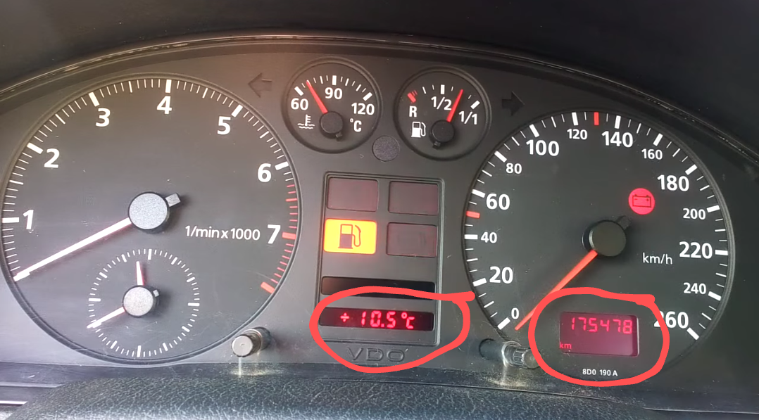 Miałem deskę rozdzielczą z komputerem pokładowym, ale się spaliła.Ponieważ nie mogłem znaleźć, założyłem taką z silnika benzynowego ze starszej wersji do Audi, ale bez komputera.