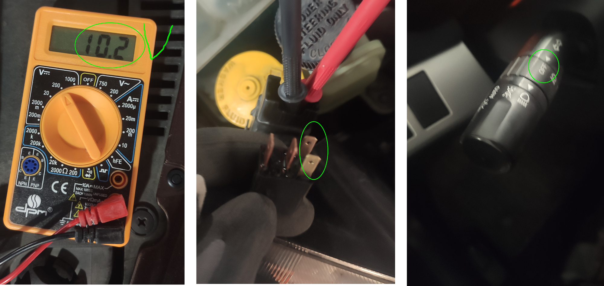 W trakcie moich badań, dokonałem pomiaru napięcia między pinami 85 i 86. Okazało się, że kiedy światła są włączone, mierzę jedynie 6V, zamiast oczekiwanych 12V. Natomiast, kiedy światła są wyłączone, wartość wynosi 10V, zamiast 0V.