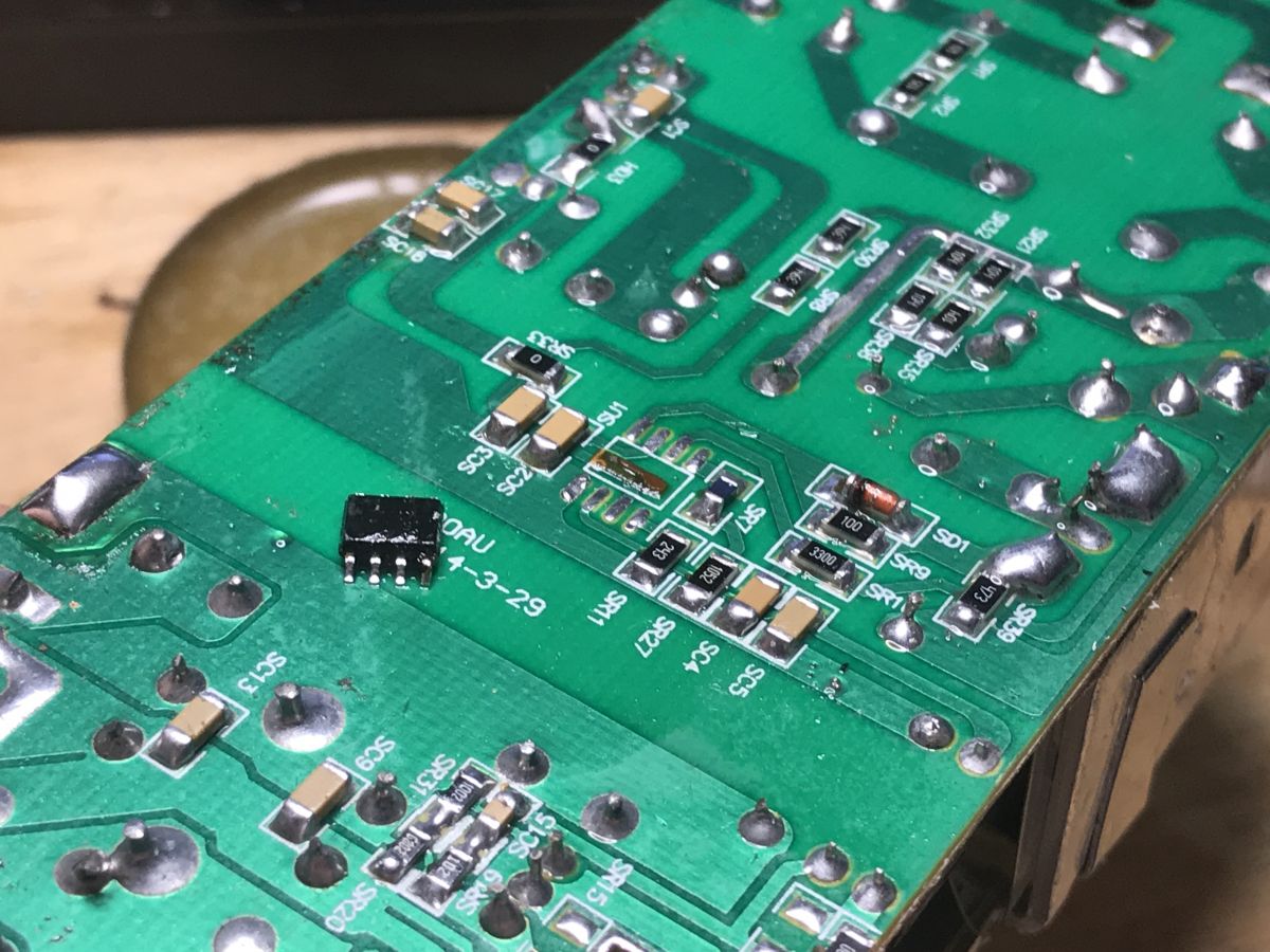 W tej sytuacji najpierw wymieniłem OB2269. Użyłem metody dawania dodatkowego spoiwa na piny (by je razem podgrzać) a potem po podgrzaniu unoszeniu najpierw jednej, a potem drugiej strony układu.