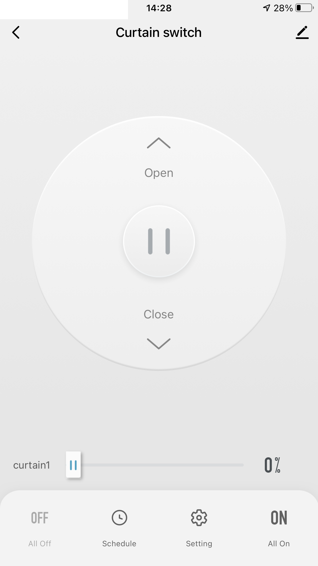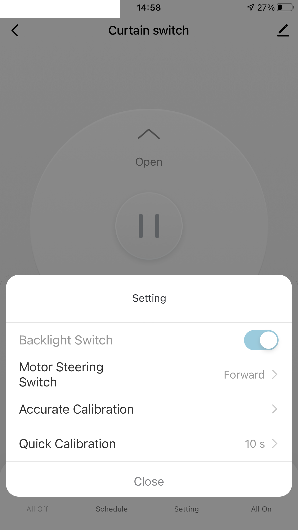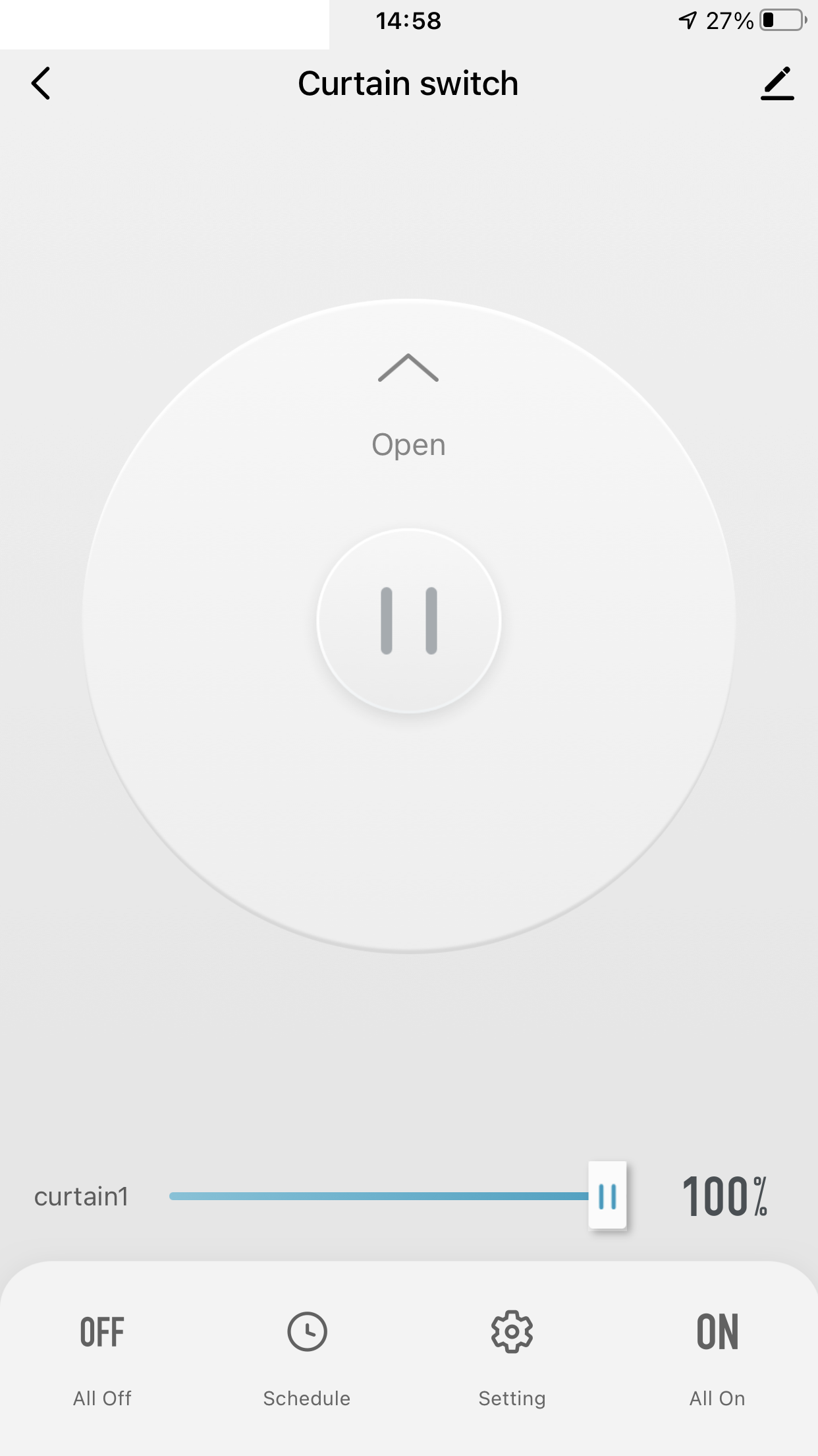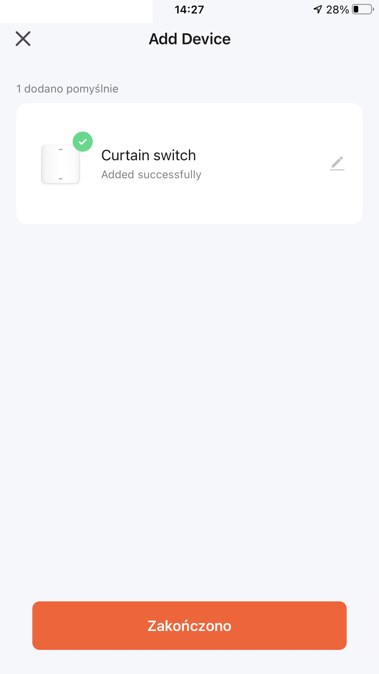 Po sparowaniu mamy kontrolę nad % otwarcia rolet, czyli wszystko jest w pełni płynnie.