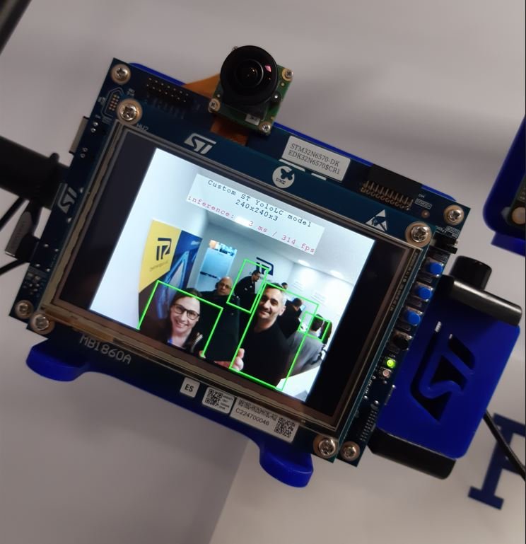 Redakcja EE Times otrzymała wyłączny dostęp do wersji demonstracyjnej nadchodzącego mikrokontrolera STM32N6 firmy STMicro. Element ten będzie zawierał dedykowany, wbudowany akcelerator sztucznej inteligencji (AI), który został opracowany wewnętrznie w STMicro. Ekspozycja pokazała, że -N6 działa, w dodatku pozwala na uruchamianie niestandardowej wersji YOLO z imponującą prędkością 314 fps. To od jednego do dwóch rzędów wielkości szybciej niż ta sama sieć pracująca na mikrokontrolerze z rodziny STM32H7, najpotężniejszym istniejącym układzie STMicro, który wykorzystuje ARM Cortex-M7.