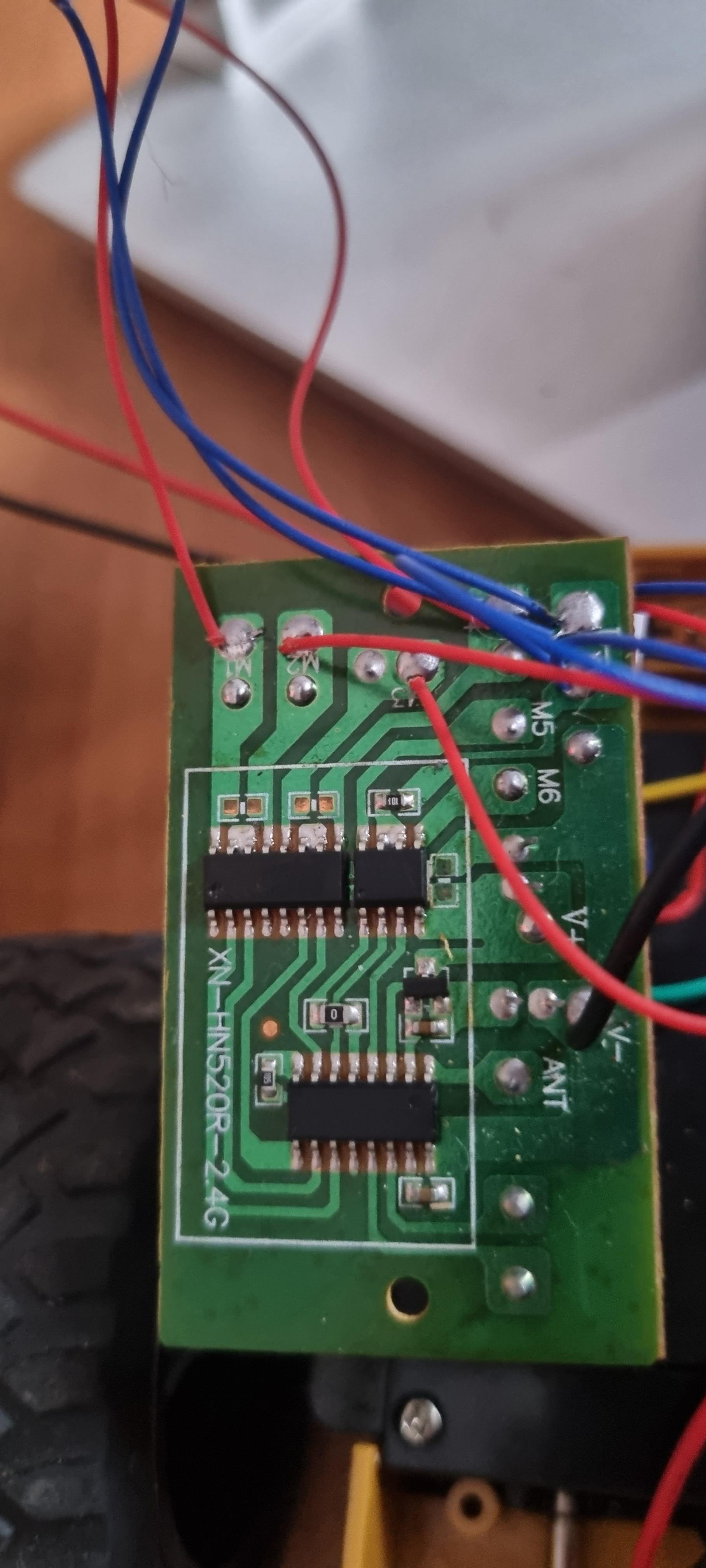 Czyli po sprawdzeniu czy nóżki 1 i 5 na płytce nie są gdzieś już połączone (np. druk przygotowany na wypadek stosowania zamienników), można wlutować MX1508 i pociągnąć przewodami na te nóżki zasilanie logiki. Albo z wyjścia stabilizatora zasilającego kość radiową albo z nóżki 1 kostki obok czyli MX612E bo to jej zasianie logiki (Vcc).