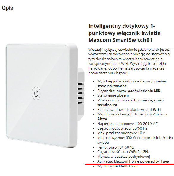Produkt wyróżnia jedna rzecz - dziwna aplikacja "Maxcom Home powered by Tuya", czyżby kolejna malowanka?
