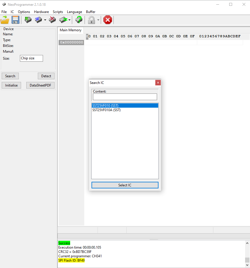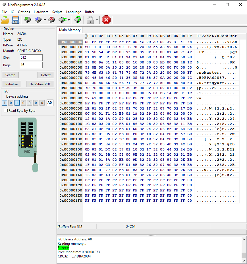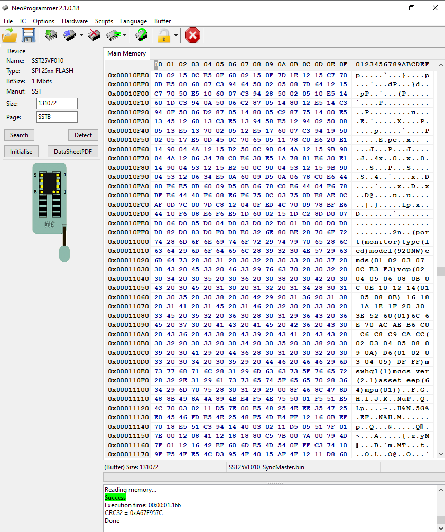 Podłączamy programator do komputera, po stronie PC używam NeoProgrammer, soft poprawnie wykrywa pamięć: