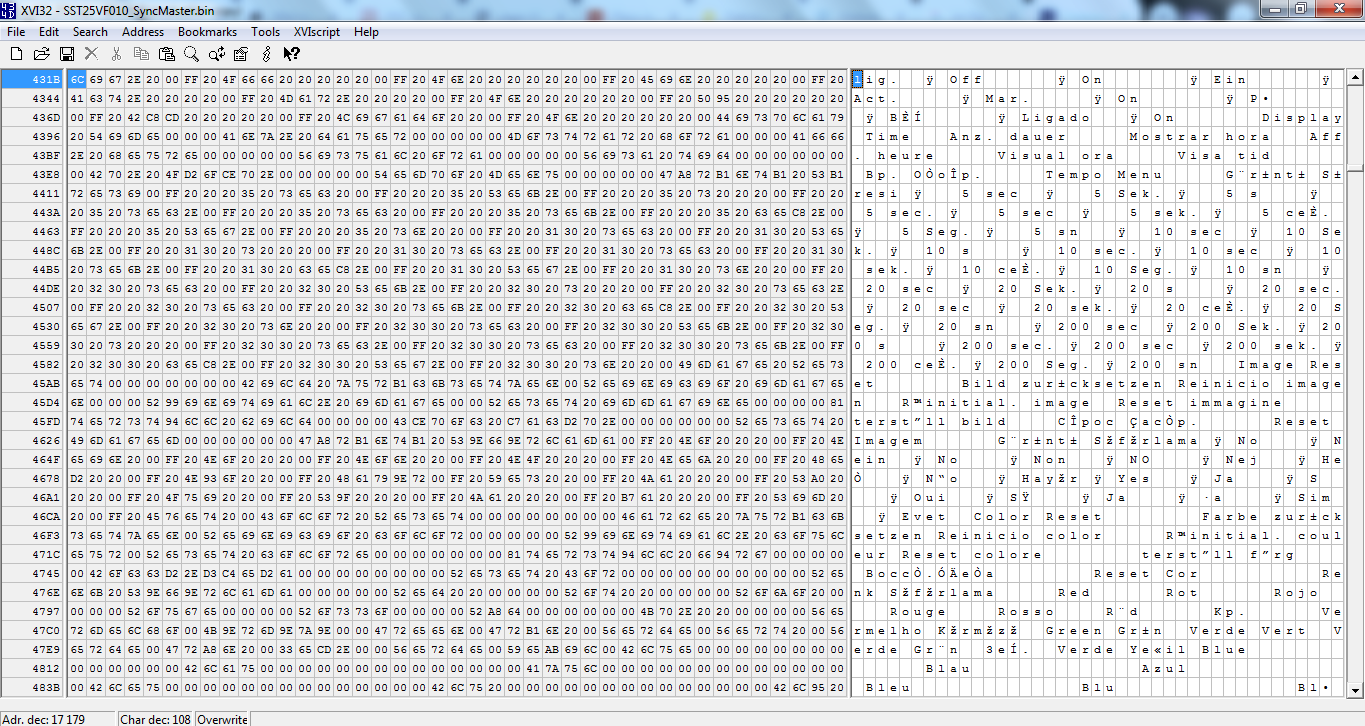 Co w niej jest? Widzę napis SyncMaster a reszta to pewnie ustawienia użytkownika, kontrast, wybór języka, nasycenie kolorów, itd. Ktoś wie co jeszcze tam może być?