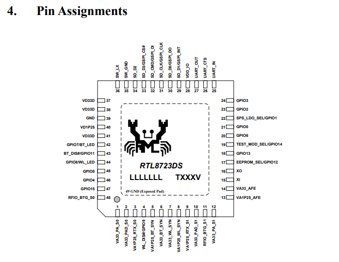 Ten moduł też wspiera Bluetooth, komunikuje się z hostem przez SDIO i UART: