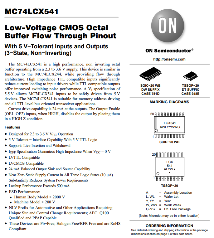 Dwie sztuki MC74LCX541, tym razem to tylko oktalny bufor: