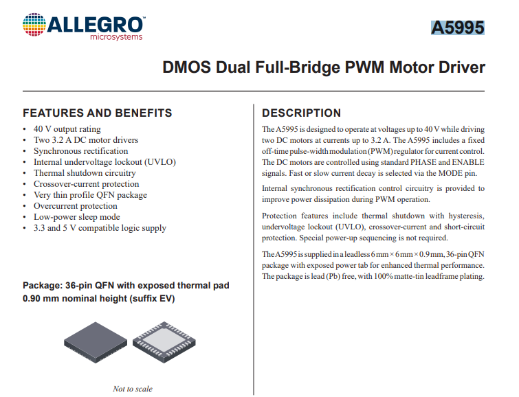 Silnikami DC steruje 5995 (A5995), podwójny mostek H w obudowie QFN: