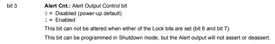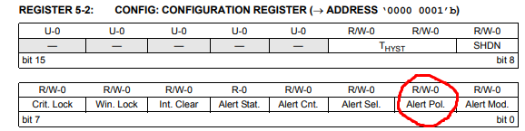 Jeszcze należy doprecyzować, gdzie ustawiamy tryb komparatora bądź przerwania, gdzie ustawiamy poziom na ALERT (wysoki bądź niski w momencie alarmu) i gdzie ustawiamy histerezę: