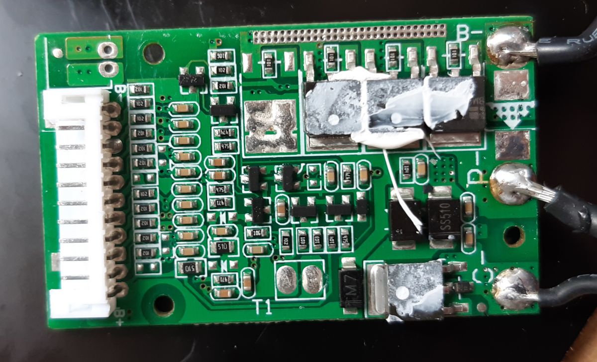 Baterię rozebrałem. Posiada w środku BMS. Przewody do baterii sprawdzone, nic nie odlutowało się, zgrzewy wizualnie poprawne., żadnej rdzy itp.