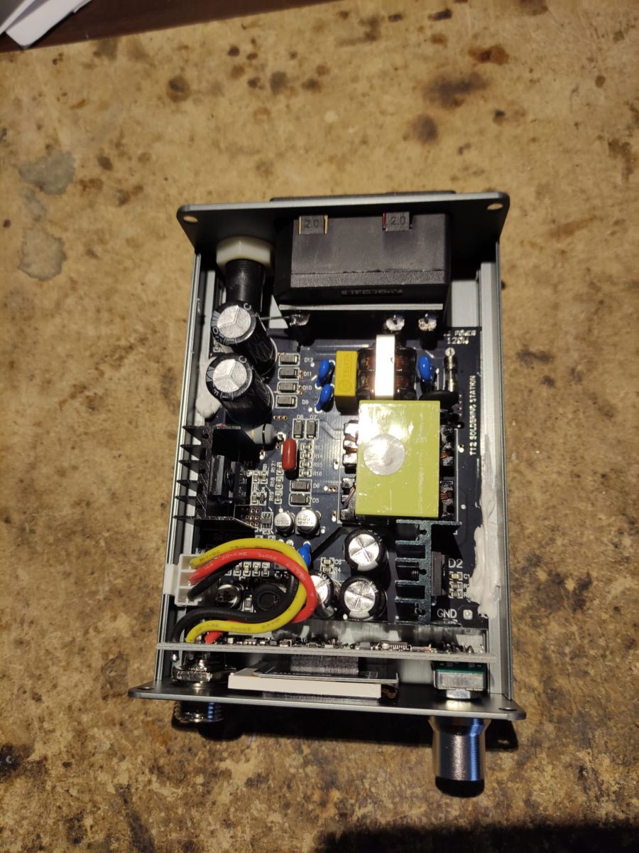 Niestety przeglądając materiały w internecie wygląda, że zasilacz lutownicy posiada jakąś wadę, przez co ulega awarii. Z tego co się dowiedziałem, lutownica zepsuła się trakcie włączenia. Po włączeniu zamiast wyświetlić logo na wyświetlaczu zasilacz zasyczał i z obudowy wydobył się dymek.
