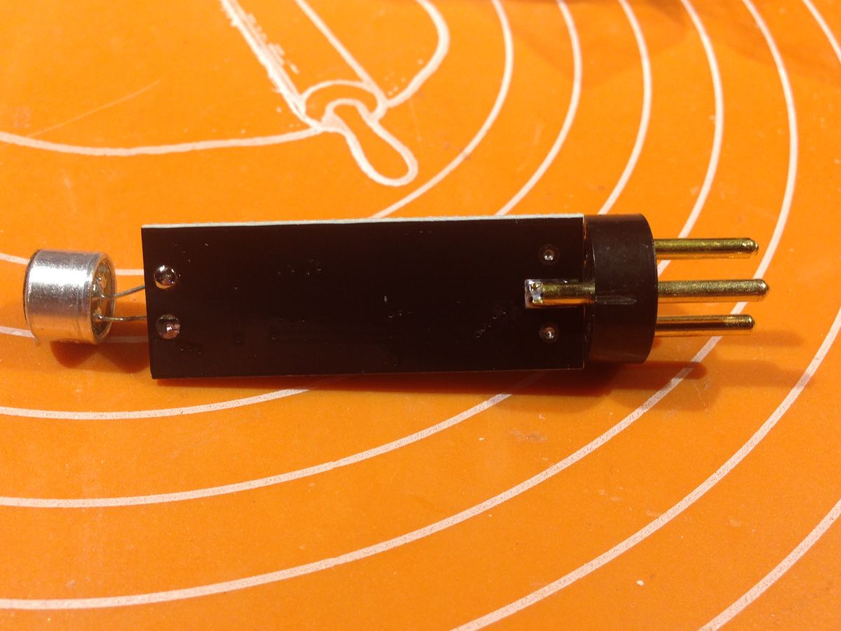 Moduł przychodzi w torebce strunowej, zmontowany poza jedną śrubka, mocującą gniazdo w typowym korpusie mikrofonu estradowego a jednocześnie mocującej i płytkę przedwzmacniacza - jest ona przylutowana do pinów wtyczki. Proste rozwiązanie a jednocześnie wystarczająco wytrzymałe - płytka jest naprawdę niewielka : szerokość 16mm (tyle samo średnicy ma gniazdo męskie w mikrofonie), i długa na 45mm. Płytka jest bez wkładki elektretowej - tę należy wybrać we własnym zakresie - pasować będzie każda wkładka elektretowa dwupinowa.