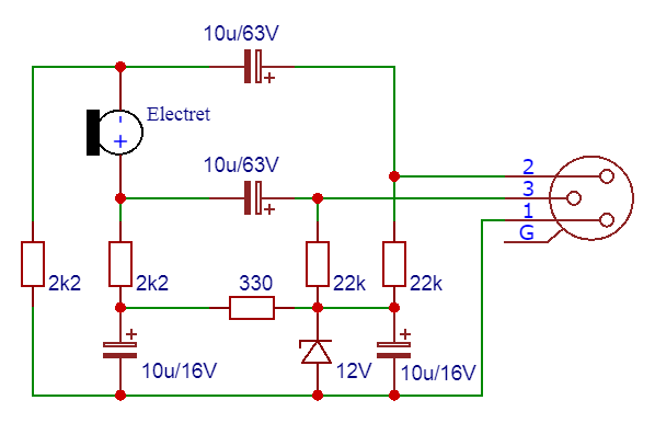 . Z samej konstrukcji potwierdza się też informacja o zasilaniu typu Fantom - a więc mamy możliwość zbudowania PRAWIE estradowego mikrofonu pojemnościowego - tak, tak: mikrofony elektretowe są specyficzną odmianą mikrofonów pojemnościowych. Różnica leży w polaryzacji membrany - w "prawdziwym" pojemnościowym do tego celu stosuje się wysokie napięcie (przeważnie...) uzyskiwane w przedwzmacniaczu, w elektrecie sama membrana jest trwale spolaryzowana już na etapie produkcji. Poza tym - zasada działania bardzo do siebie podobna.