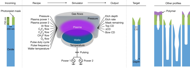 Przedsiębiorstwo Lam Research stworzyło wirtualne środowisko pozwalające szybko przetestować, jak dobrze dane algorytmy mogą znaleźć odpowiednią recepturę kontrolującą interakcje plazmy z płytką krzemową (substratem).
