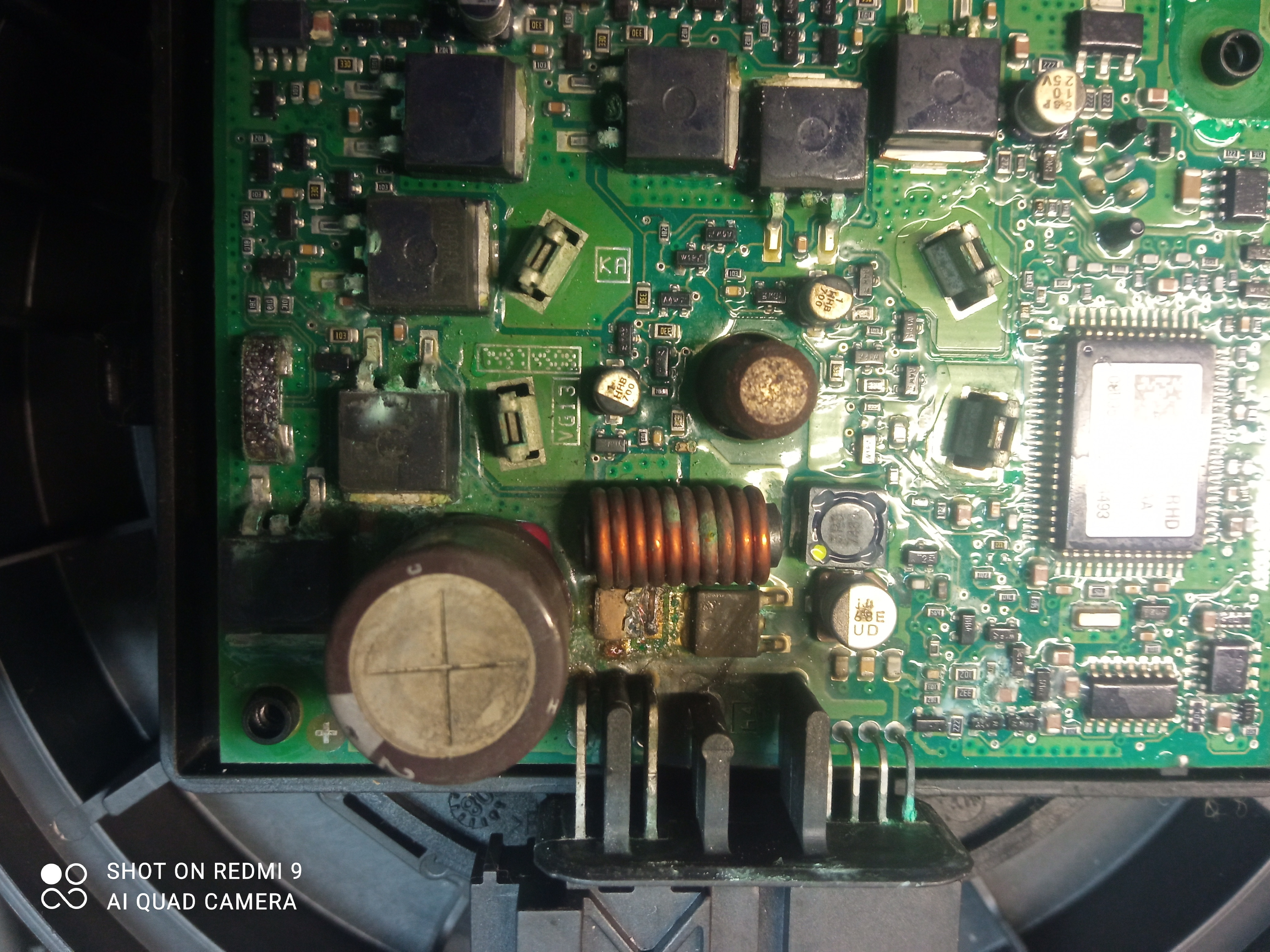 Więcej bezpieczników związanych typowo z dmuchawą nie ma, chyba że coś przeoczyłem. Do wentylatora (sterownika) idą 2 kostki, jedna kostka z 2 grubymi przewodami, gdzie jest na nich cały czas prąd mimo wyłączonego zapłonu.