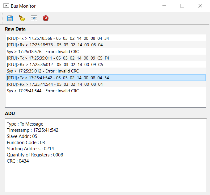 <tx>0x01 0x03 0x00 0x05 0x00 0x08 0x54 0x0D </tx>