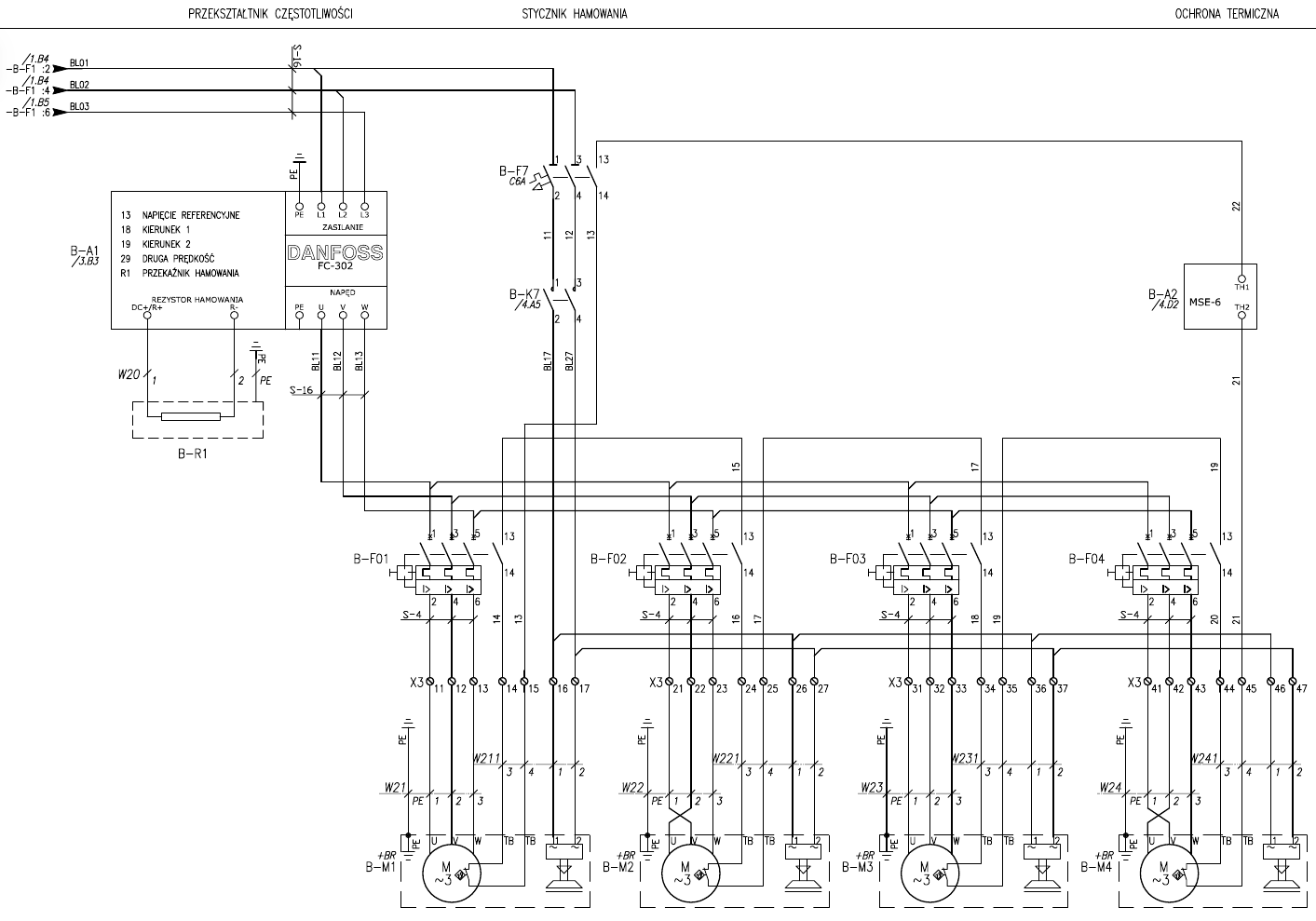Możliwość jednoczesnego zadziałania wszystkich czterech wyłączników silnikowych jest żadna, a dopóki choć jeden wyłącznik jest załączony i choć jeden silnik przyłączony do falownika, temu ostatniemu nic nie grozi.