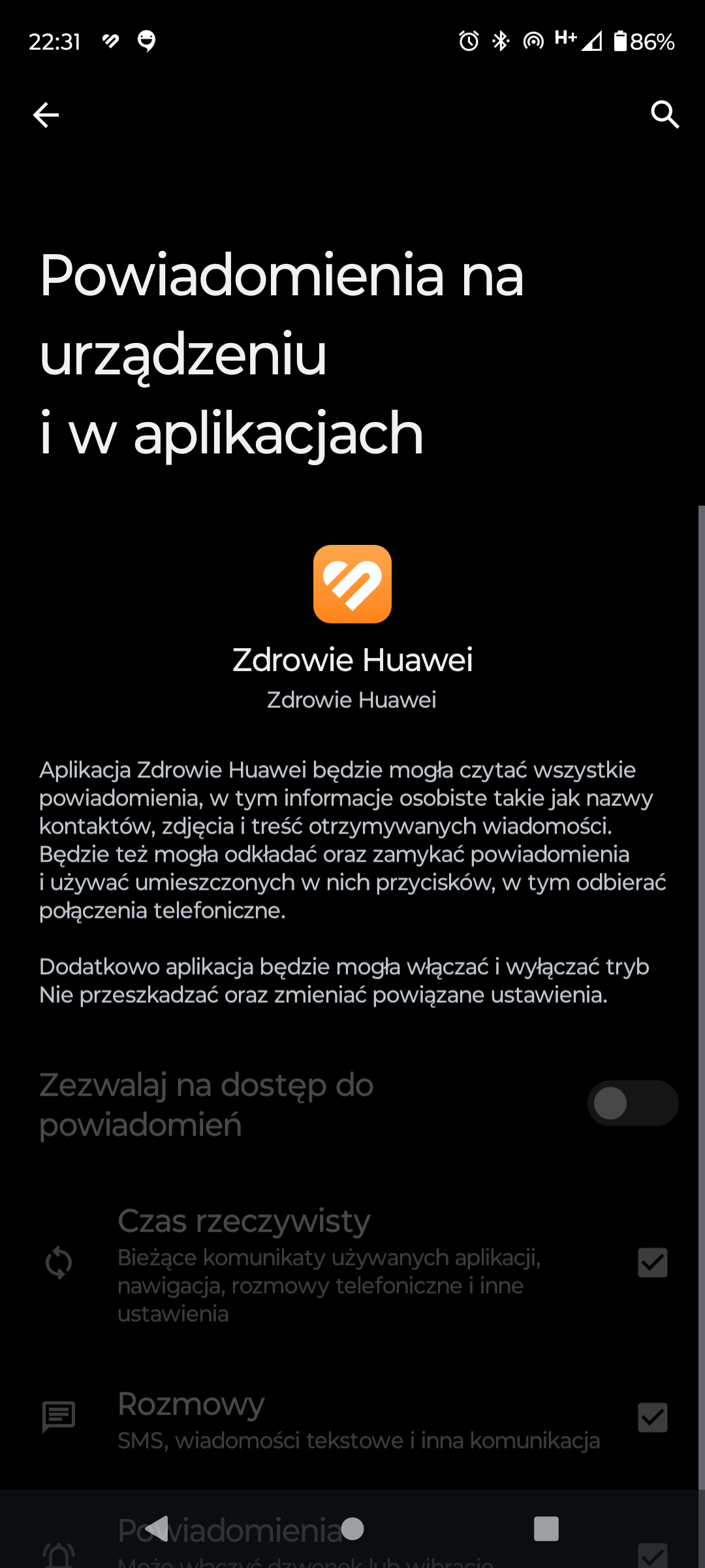 Posiadam zegarek od Huawei, kupiłem Motorolę zainstalowałem aplikacje zdrowie i sparowałem zegarek. Mam problem z odblokowaniem dostępu do powiadomień - screan- przez co nie wyświetlają mi się komunikaty na zegarku.