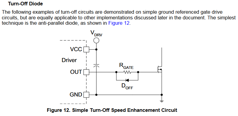 A jaką pełni funkcję? Trzeba zajrzeć w datasheet kontrolera PWM i odnaleźć ją na schemacie. Jeśli jest np. umieszczona równolegle do rezystora (Rgs) ograniczającego prąd bramki dla mosfeta, to pomaga szybciej rozładować bramkę i tym samym uzyskać szybszy czas przełączania.