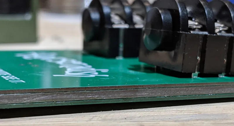 Autor użył taśmy kaptonowej jako metody mocowania PCB, ponieważ nie będzie miała ona problemu z wytrzymaniem ciepła pieca do lutowania. Po wszystkim wystarczy papier ścierny, aby oczyścić krawędzie gotowego laminatu.