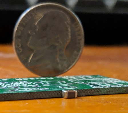 Mimo że można osadzać kondensatory, rezystory i mikrokontrolery wewnątrz układu warstw PCB, istnieją pewne ograniczenia tej technologii. Przede wszystkim obwód klona Rangemastera wymaga kondensatorów o pojemności aż 47 μF. Ta wartość jest zdecydowanie zbyt duża dla niewielkich kondensatorów SMD, a najmniejsze o takiej pojemności (fizycznie) mają grubość rzędu 10 mm. Jeśli nie chcemy, żeby wynikowa płytka miała 15 mm grubości, te kondensatory są zdecydowanie za duże. Rozwiązaniem tego problemu jest dodanie wielu i połączenie ich ze sobą równolegle. To prowadzi do kolejnej zagwozdki. Oryginalny obwód używał kondensatorów elektrolitycznych, a nie małych ceramicznych. Ponieważ autor wykorzystuje te ostatnie, rzeczywista pojemność jest mniejsza niż suma pojemności wszystkich kondensatorów w układzie. Kondensatory MLCC, gdy są spolaryzowane jakimkolwiek napięciem, wykazują niższą pojemność. Ta kondensatorów ceramicznych zależy od ich napięcia polaryzacji, ale można przymknąć oko na ten mankament, po prostu dodając jeszcze więcej jednostek do układu. Tutaj jest to trochę bardziej skomplikowane — w przypadku kondensatorów filtrujących zasilanie, napięcie jest w zasadzie stałe, więc można łatwo oszacować spadek pojemności dla danego napięcia i go skompensować w układzie. Kondensatory MLCC, jako elementy toru analogowego będą bardziej problematyczne, gdyż napięcie na nich zmieniać może się w dosyć szerokim zakresie.