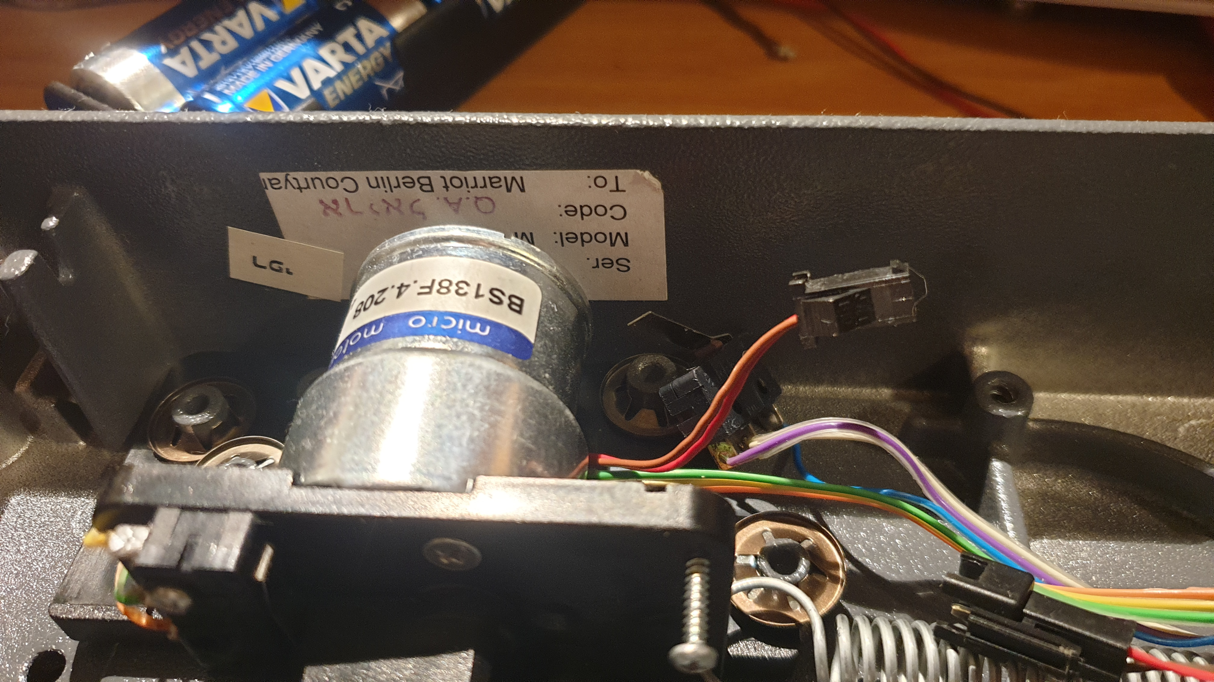 Rozebrałem sejf żeby dostać się do zamka, brakuje 5V na krańcówce która informuje elektronikę o tym, że zamek jest w pozycji zamkniętej, na krańcówce która informuje o otwarciu rygla jest 5V. Krańcówki są sprawne ponieważ sprawdziłem je miernikiem. Pomierzyłem również płytkę na której znajduję się uP, wszystko wydaje się być w porządku. Optycznie również nie ma żadnych uszkodzeń. Wydaje mi się, że elektronika rozpoznała wsunięcie rygla przy zablokowanym sejfie (I OTWARTYCH DRRZWIACH) jako próbę włamania.