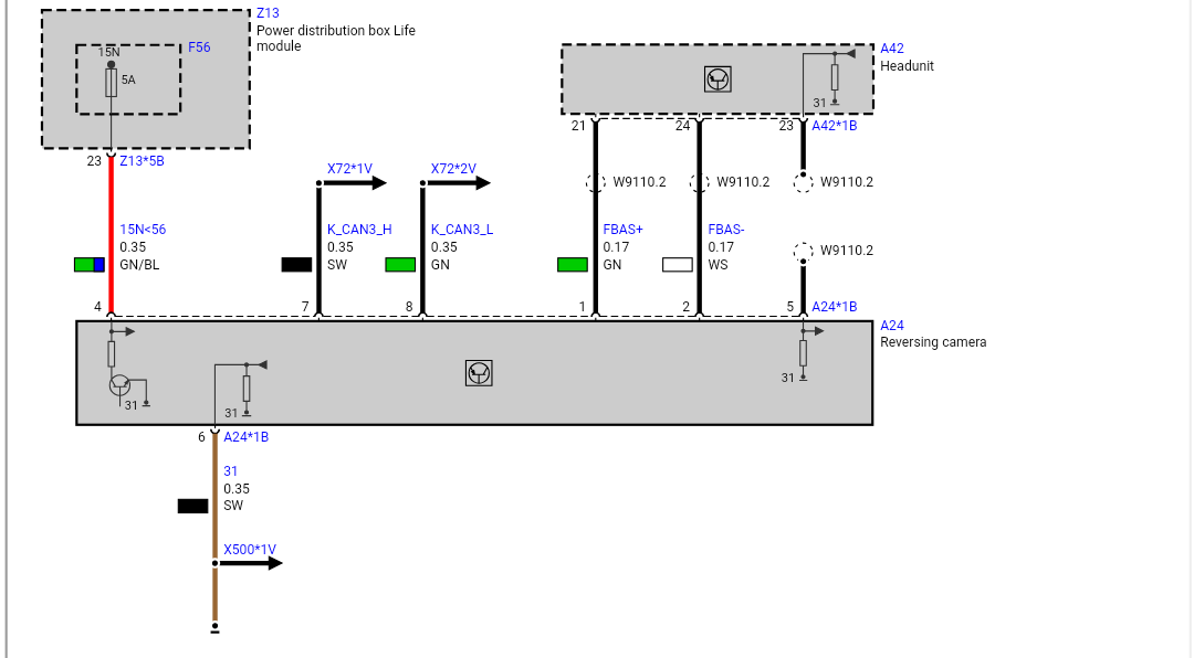 Wg schematu sygnałowe przewody są cieńsze (0.17), powinieneś bez trudu się połapać który jest który bo pozostałe sa 0.35