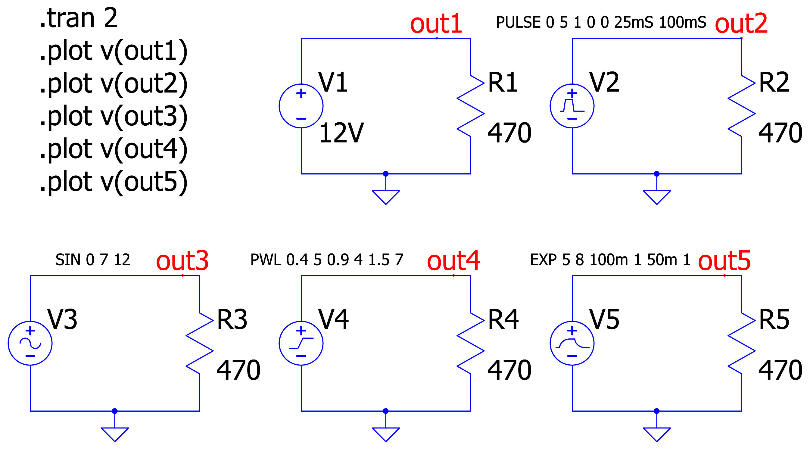 V2 out2 0 PULSE 0 5 1 0 0 25mS 100mS