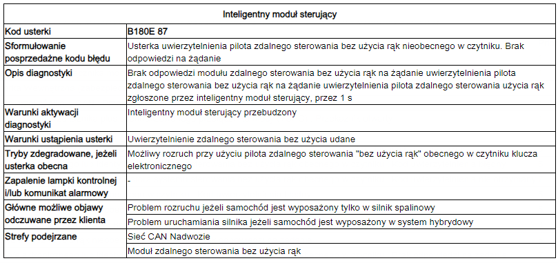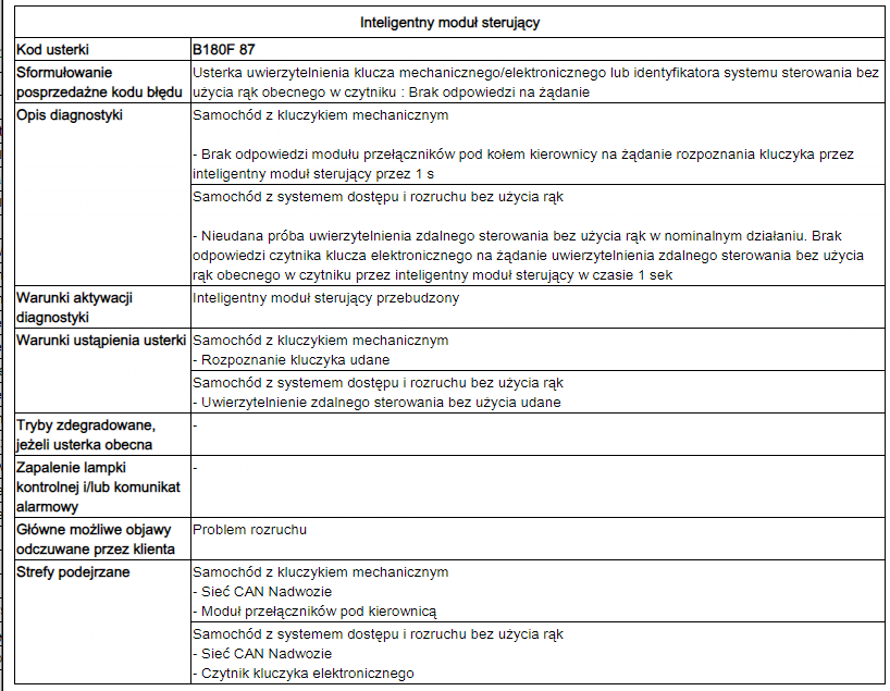 Kody bledow B180E 87, B180F 87, U1F05 11 to te z BSI a na dodatek B1836 00 - Transponder Aerial Fault