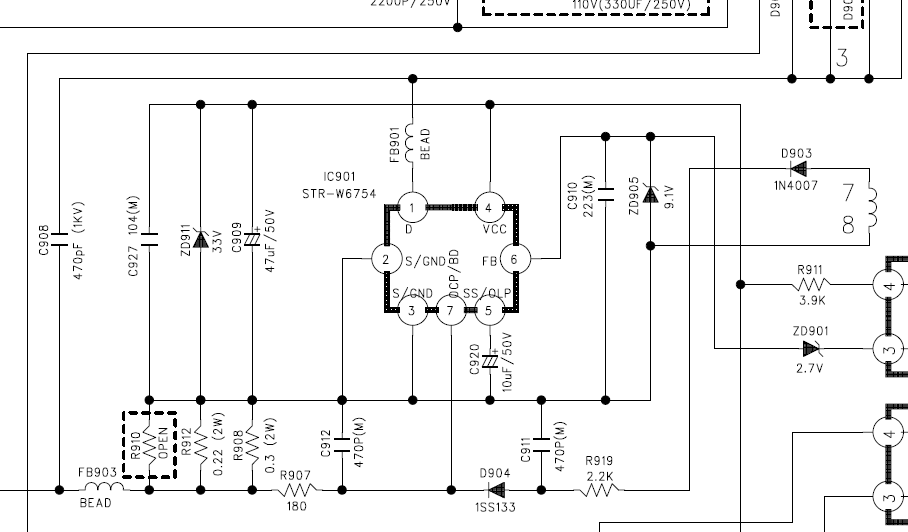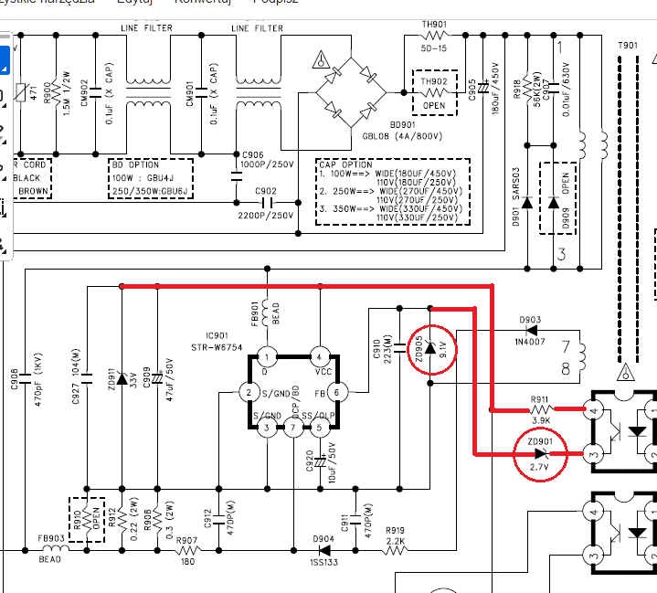 DZ911 jest na 33V. STR-W6754 ma ABSOLUTE MAXIMUM RATINGS dla Control Supply Voltage, VCC . . . . 35 V także na 30V będzie w porządku.