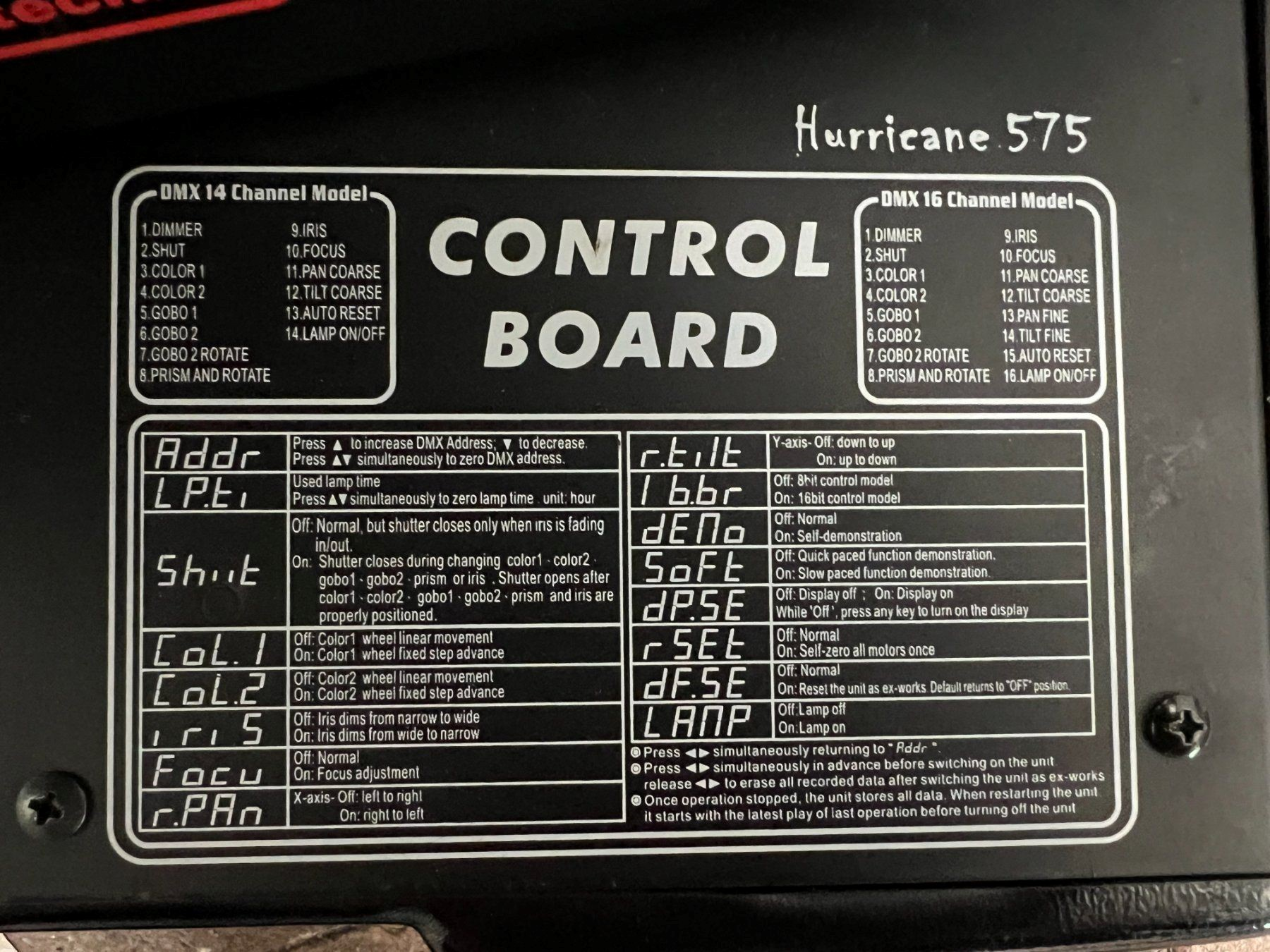 adambyw napisał: znasz może rozpiskę kanałów DMX dla Showtec Hurricane 575?