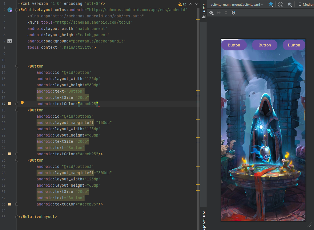 Witam. Programuję w android studio. Tworzę aplikację, ale za każdym razem kiedy chce zmienić kolor przycisku na inny, kolor pozostaje fioletowy (default). Nie mam pojęcia dlaczego tak się dzieje. Przy zmianie textview na inny kolor, nie powstaje ten problem. Proszę o pomoc