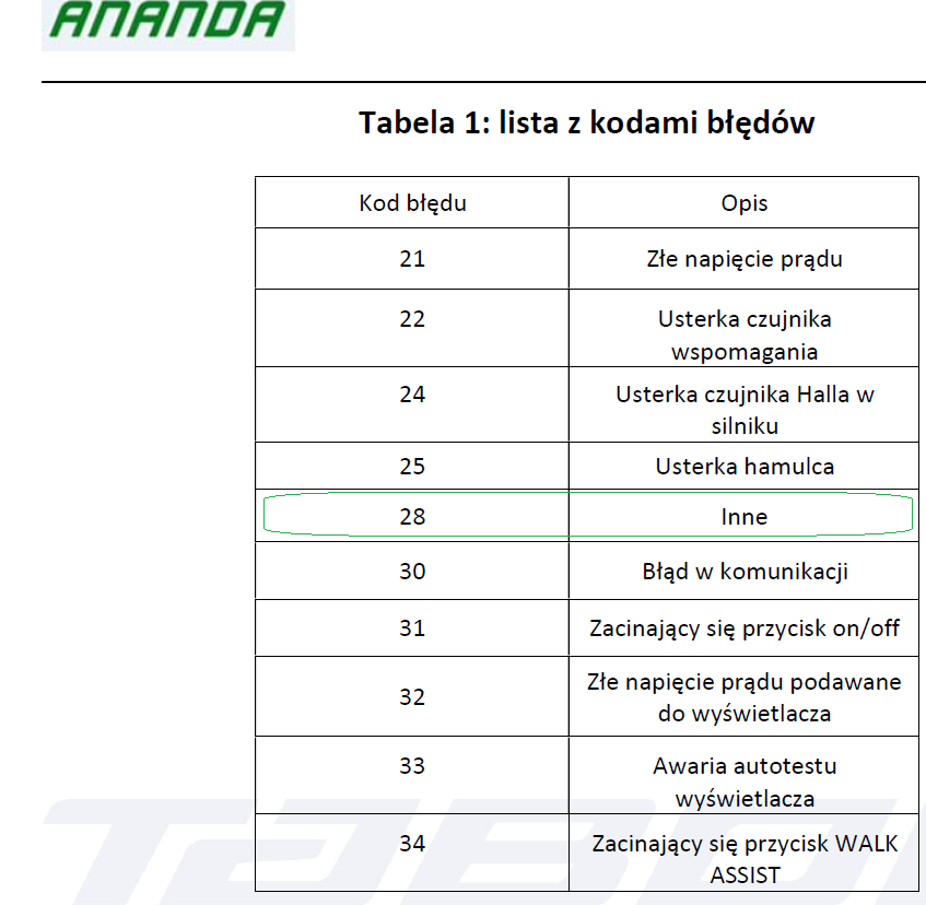 Kolega ALIBABA I podesłał instrukcje w której błąd 28 jest opisany jako inne, inny wykaz błędu sugerował problem z oświetlenie zewn.