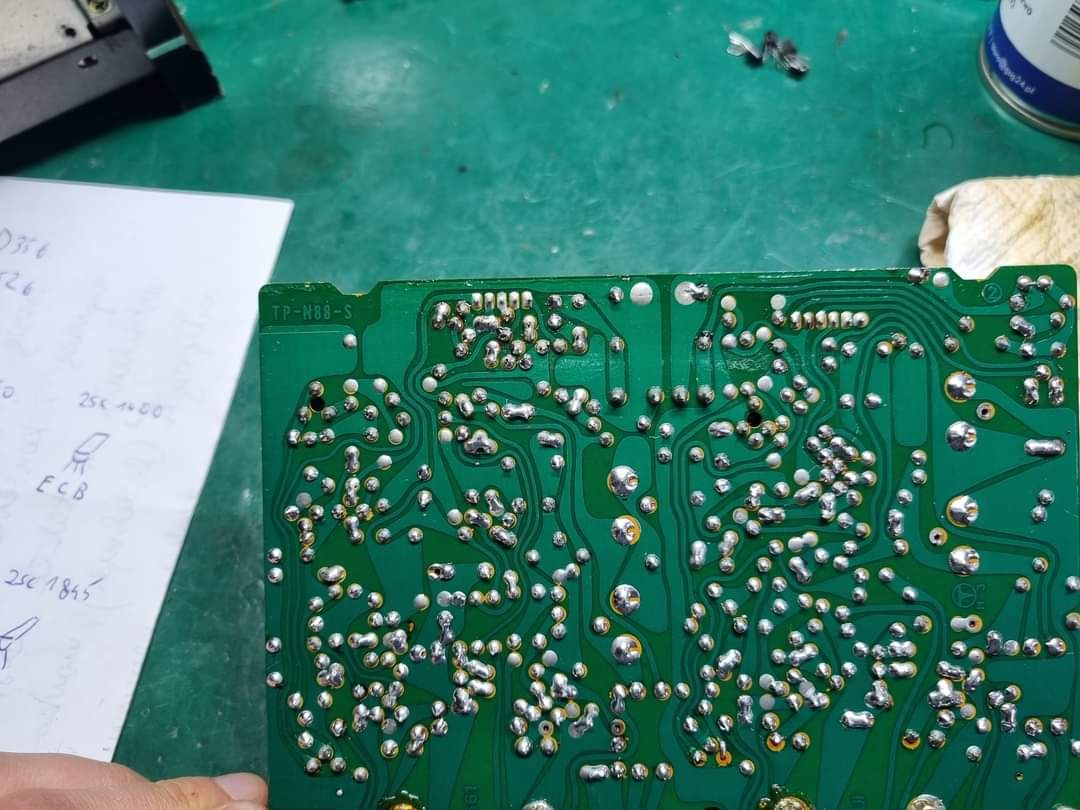 Wymianę tranzystorów TR610, TR615 oraz TR616 na 2SA992 (pin out jest odwrotny od oryginalu)