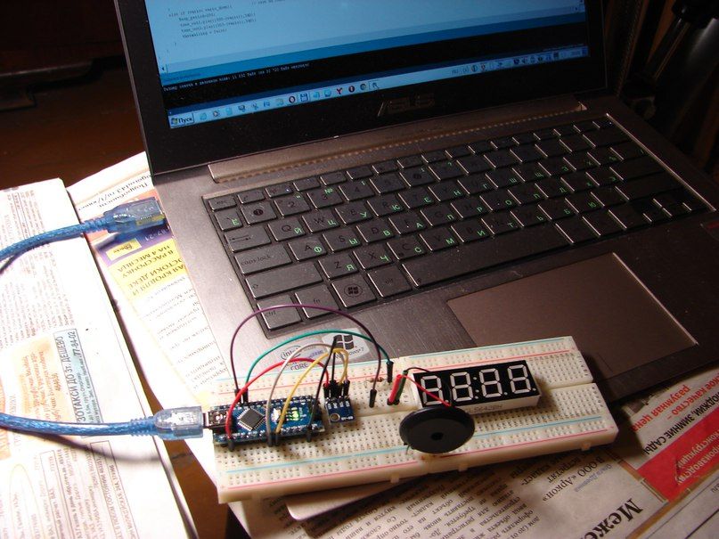 — Arduino 1.0.6., łączące port, czujnik, wyświetlacz i biblioteki głośników;
