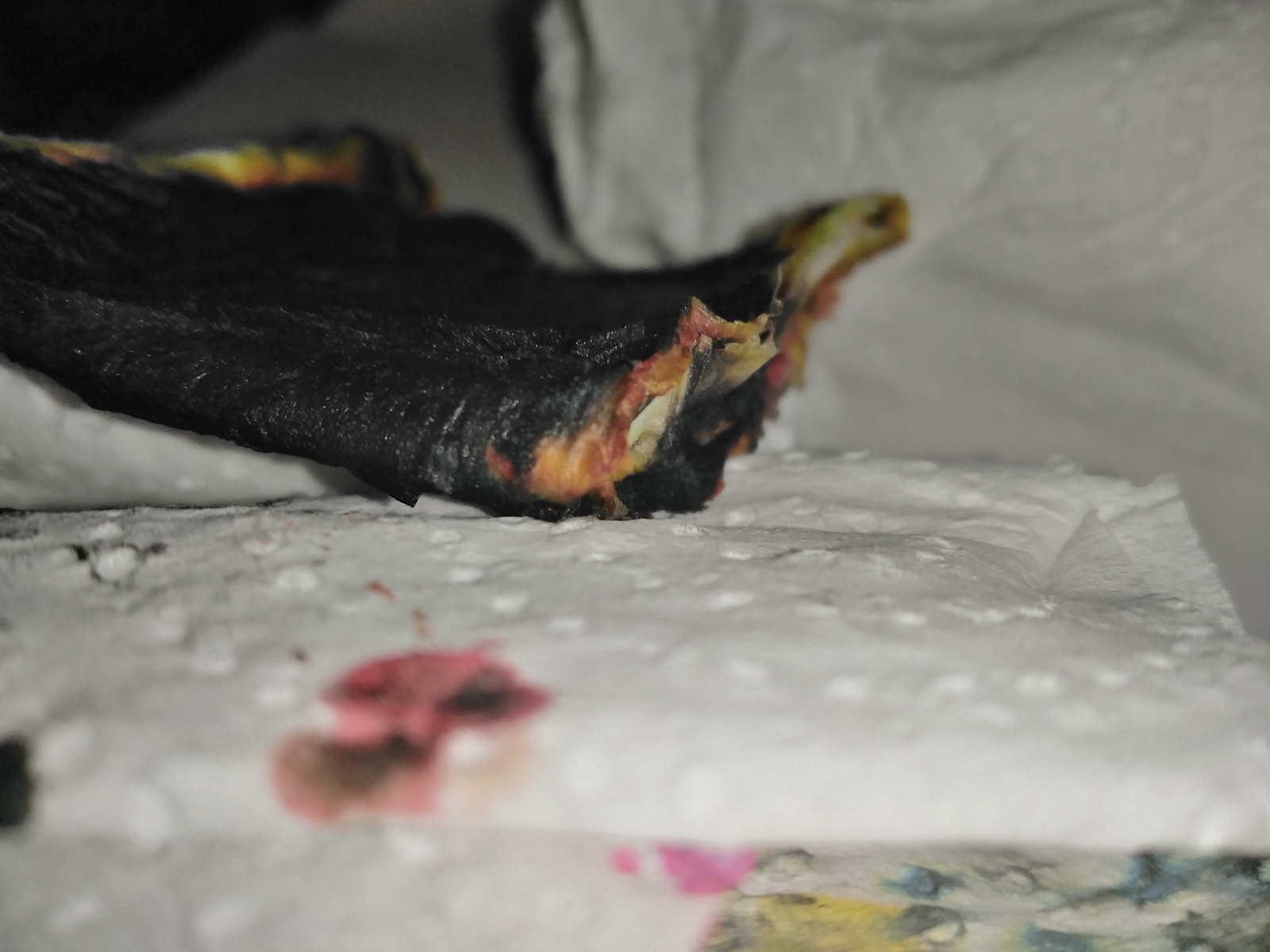 3. Ponawiam punkt 3ci ale tym razem z płynem do spryskiwania szyb w samochodzie, czemu nie? Usuwa niby smołę, żywicę... Tym razem przetoczyłem ok 4ml, inną techniką, papierki kartonikowe pod głowicą i co ok 1ml podmiana papierka i tak do skutku aż zabarwiać będzie w miarę szaro, a nie czarno. Wyszło mi więc ok 4ml.