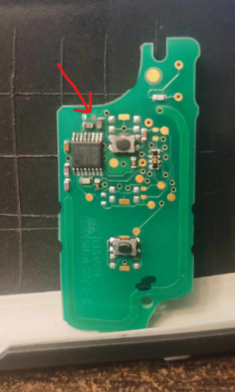Kupiłem Peugeot 207 z niedziałającym kluczykiem. Wykryliśmy, że brakuje jednego elementu. Na zdjęciu jest wskazany strzałką.