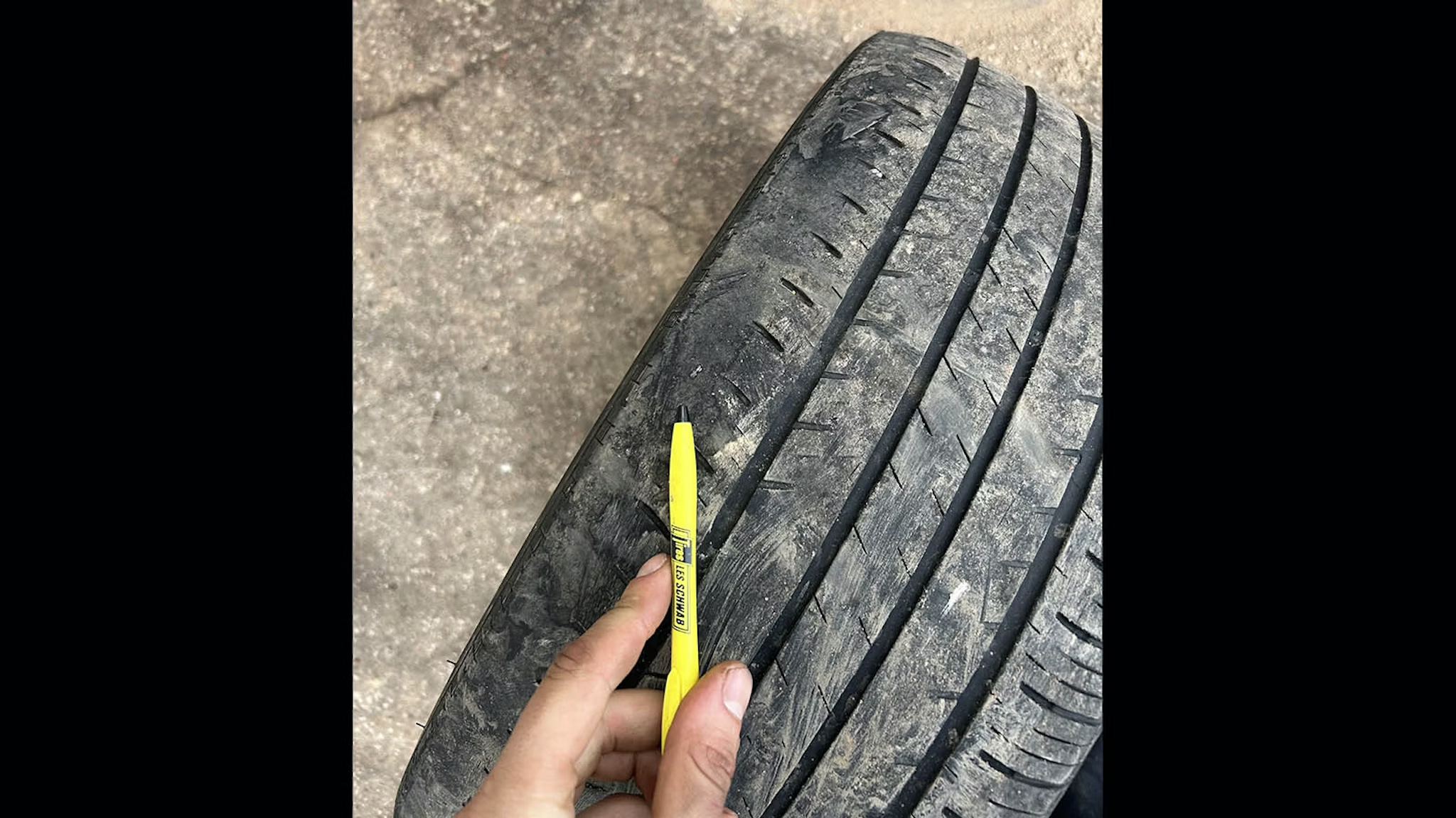 Ta opona od Tesli jest bardzo zużyta i była wymieniana po raz drugi