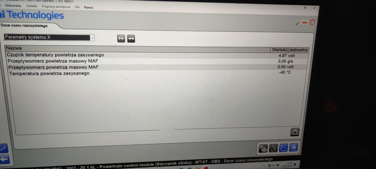 Przepływka wymieniona i dalej nic w parametrach rzeczywistych nie widać przepływki i obrotów silnika. Dolny czujnik położenia wału wymieniony na nowy i dalej bez zmian