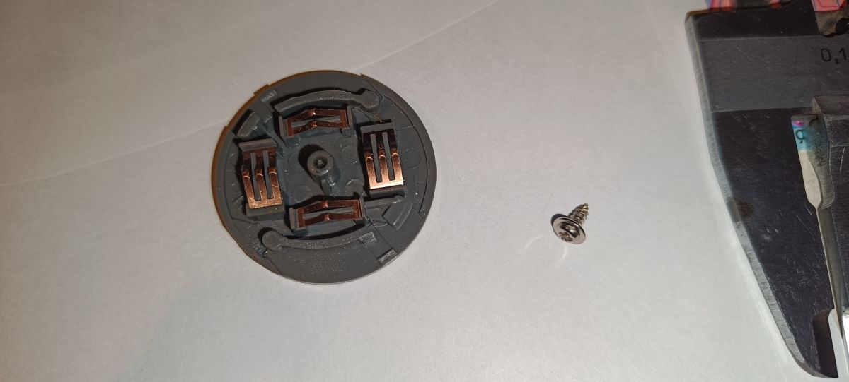 Niedawno nie załączał się. Podejrzewałem styki pokrętła. Jednak okazały się ok. Zauważyłem, że mocniejsze przyciśniecie i kręcenie włącza miernik poprawnie. Okazało się, że pękł trzpień, w który wkręcony jest wkręt.